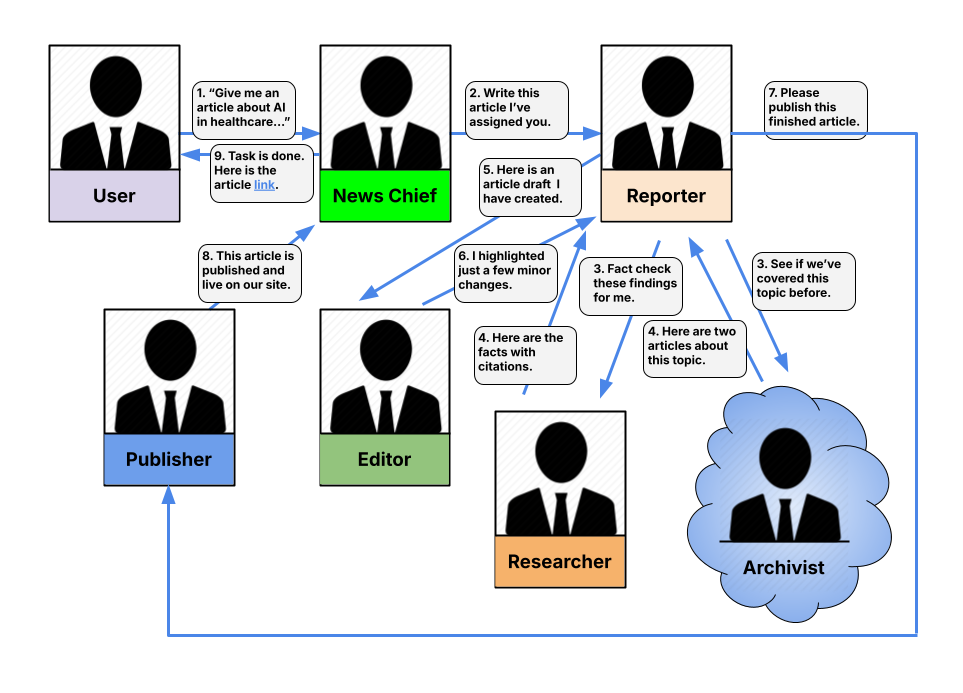 Imagine a digital newsroom powered by AI agents, each specializing in a different aspect of journalism: