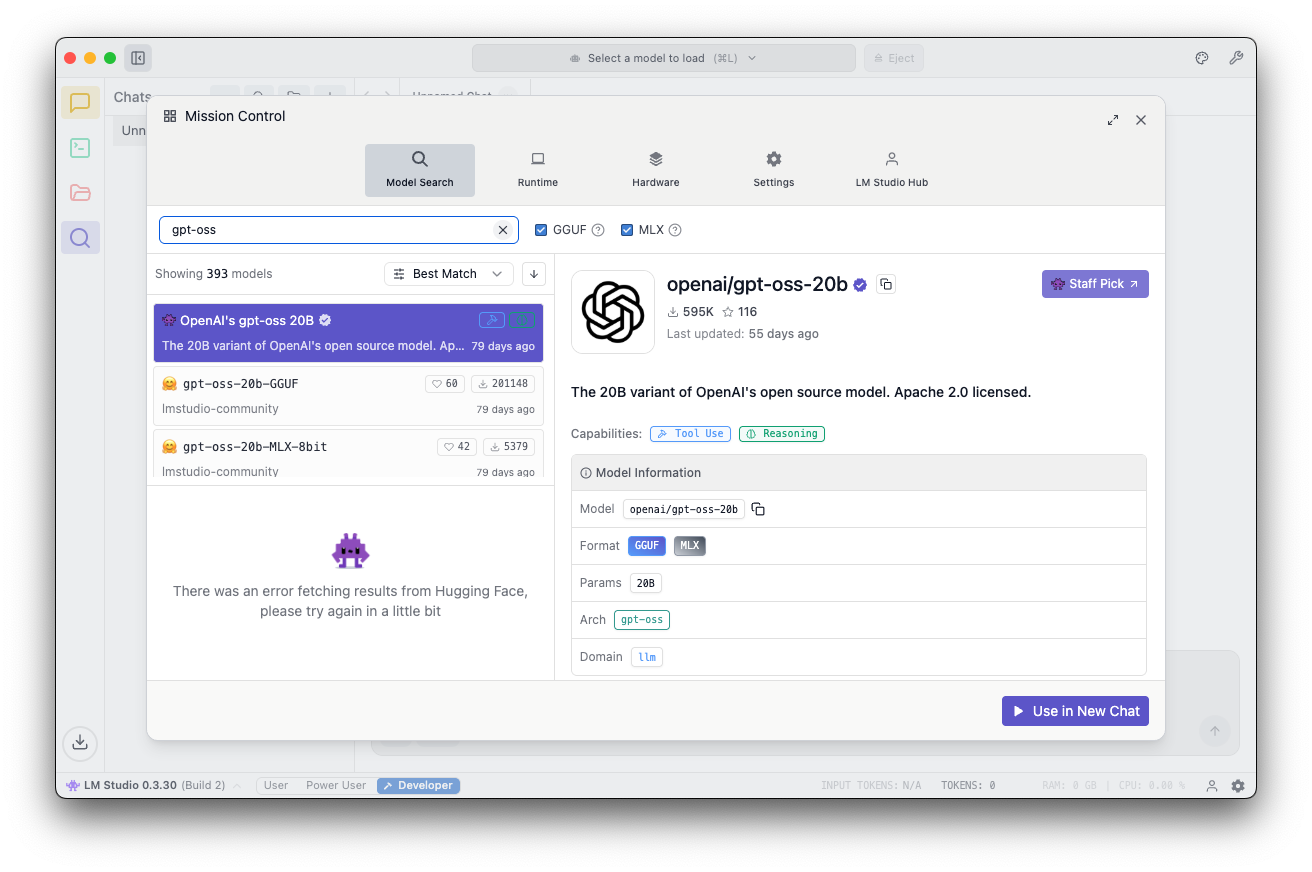 - Select the openai/gpt-oss-20b