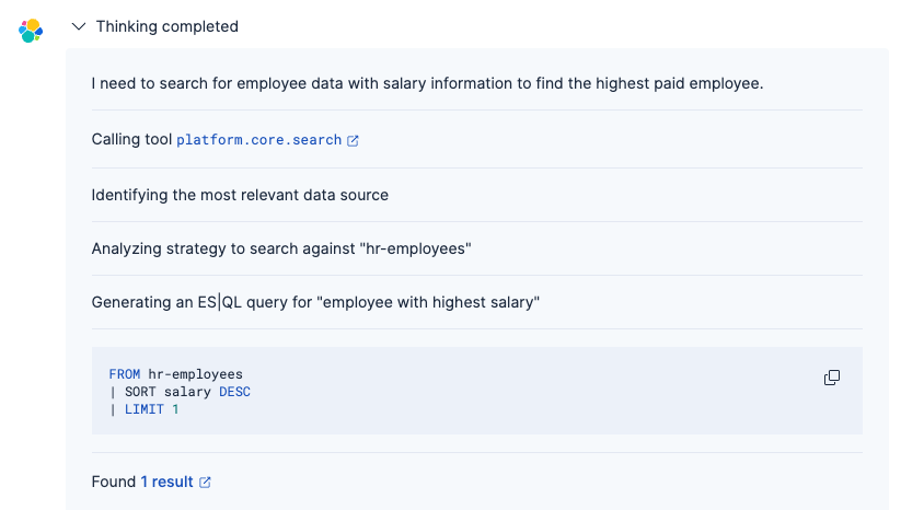 Unlike traditional lexical search, the agent powered by GPT-OSS understands intent and context, making it easier to find information without knowing exact field names or query syntax. For more details on the agent's thinking process, refer to this article.