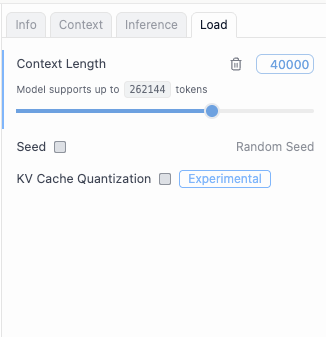 - On the right panel, go to Load and set the Context Length to 40K or higher
