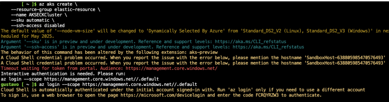 A message asking to run “az login” will show up. You have to run that command and then wait.
