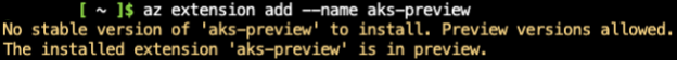 3. Install the aks-preview Azure CLI extension. This preview version will allow us to select --sku automatic on cluster creation, which enables the AKS Automatic feature.