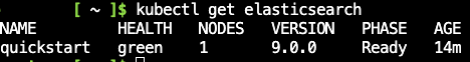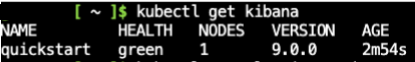 16. You can also run kubectl get elasticsearch and kubectl get kibana for more specific stats like Elasticsearch version, nodes, and health.