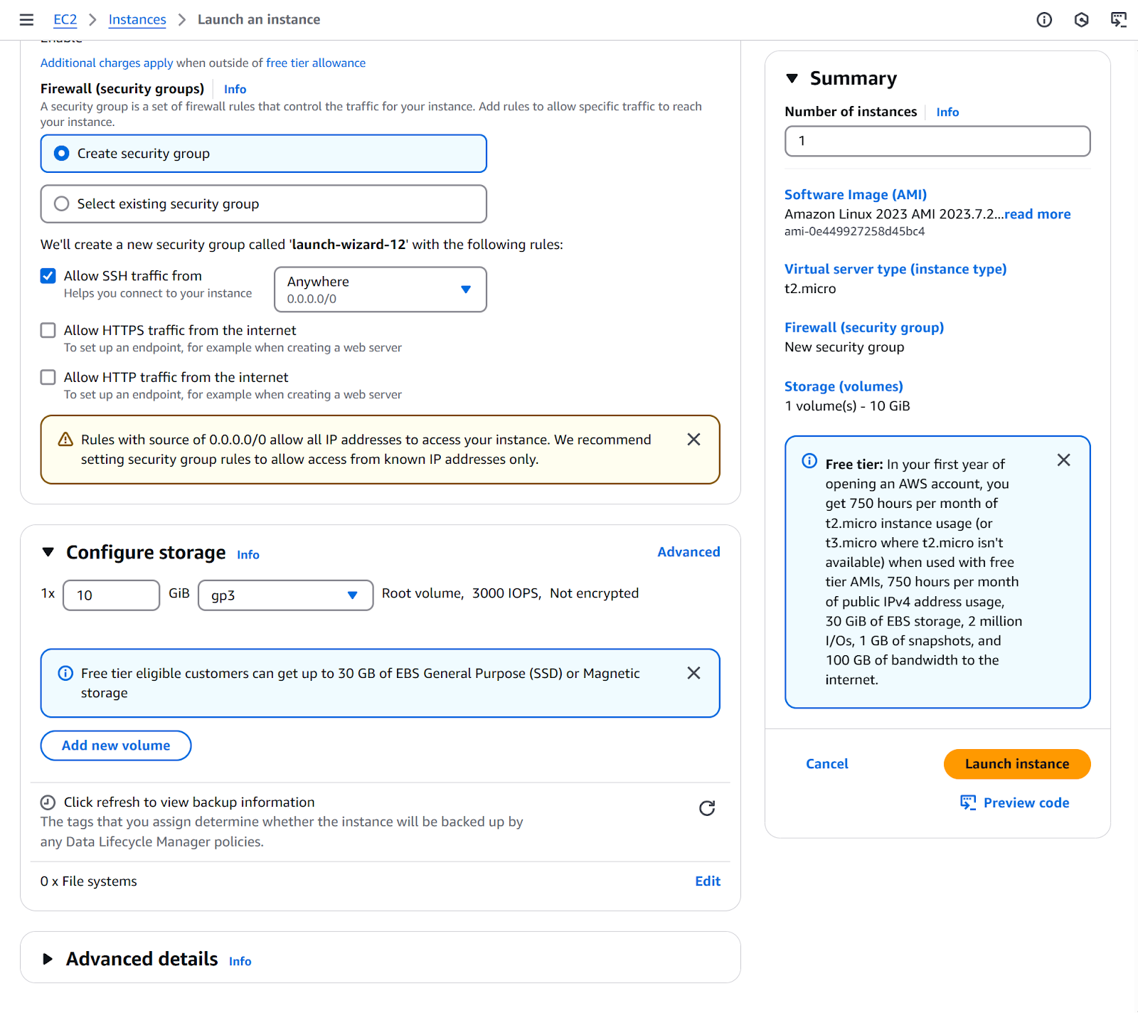 7. Click Launch instance.