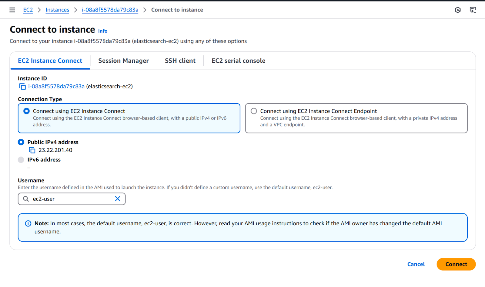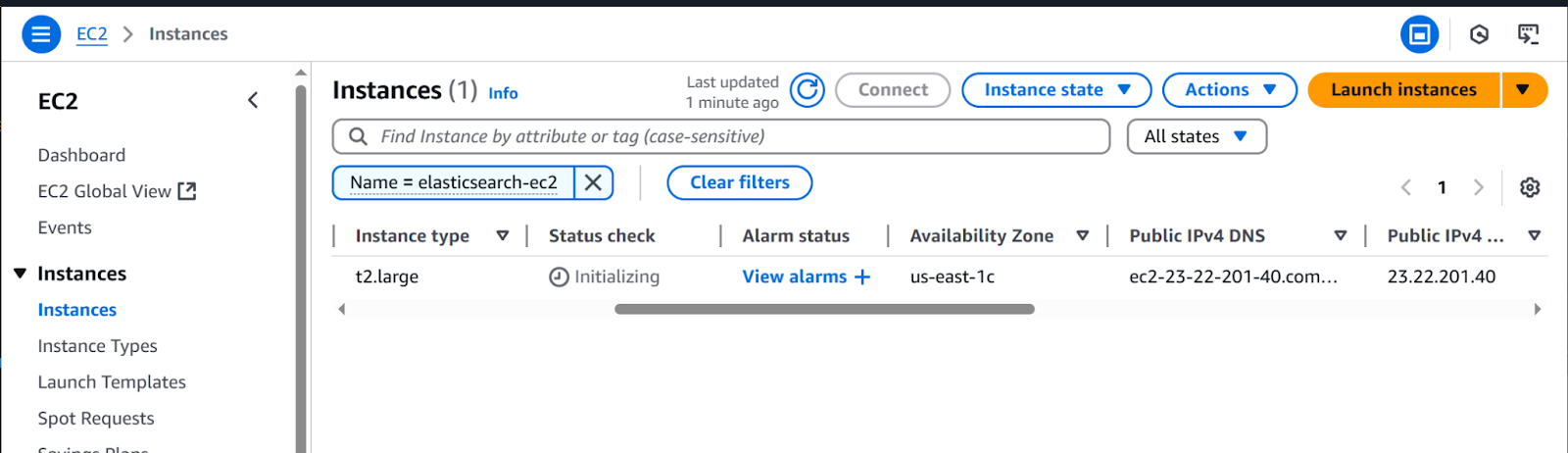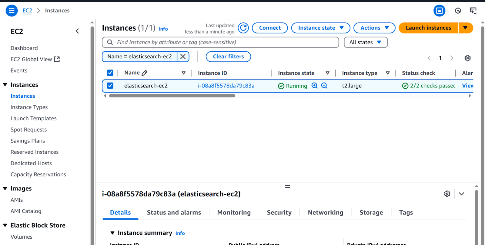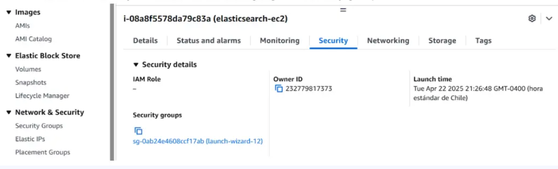 1. Go to EC2>Instances>Instances, then click on the recently created instance (elasticsearch-ec2).