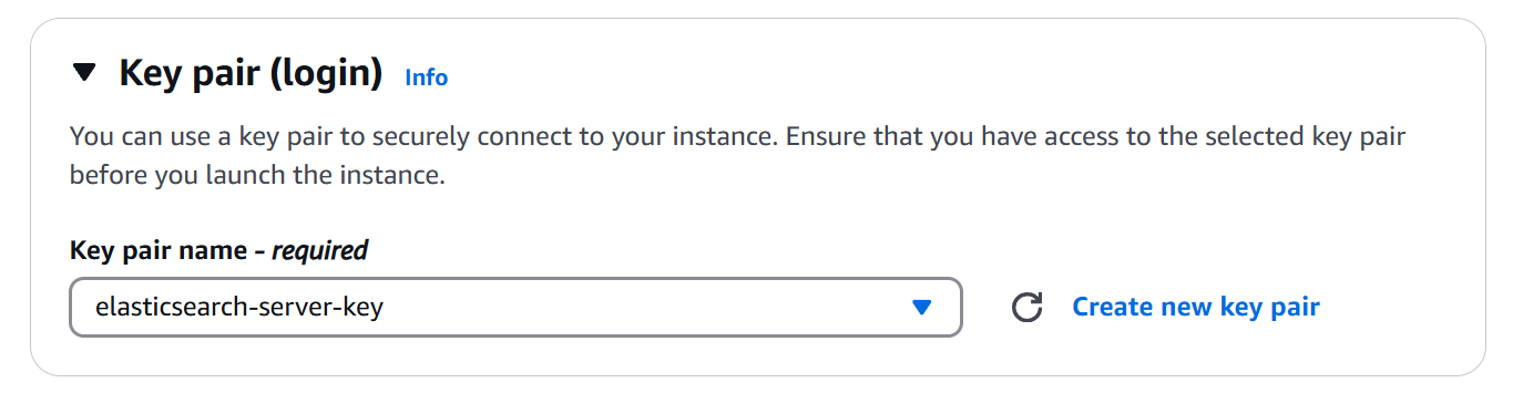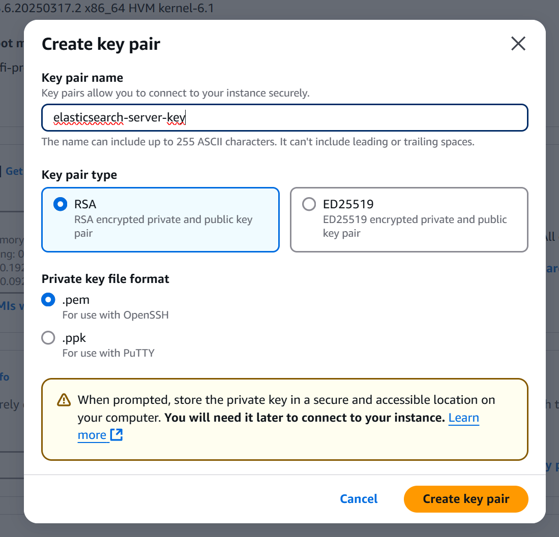 We’ll create an EC2 instance to host Elasticsearch and Kibana. The process involves selecting an operating system image (Amazon Linux 2023), choosing an instance type and storage based on your needs, opening a port for Kibana, and creating a key pair for secure access.