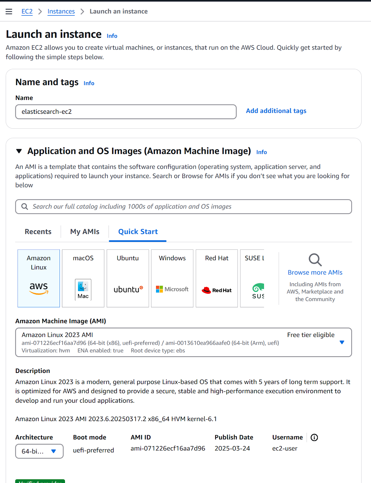 b. Application and OS Images: Amazon Linux 2023 AMI.