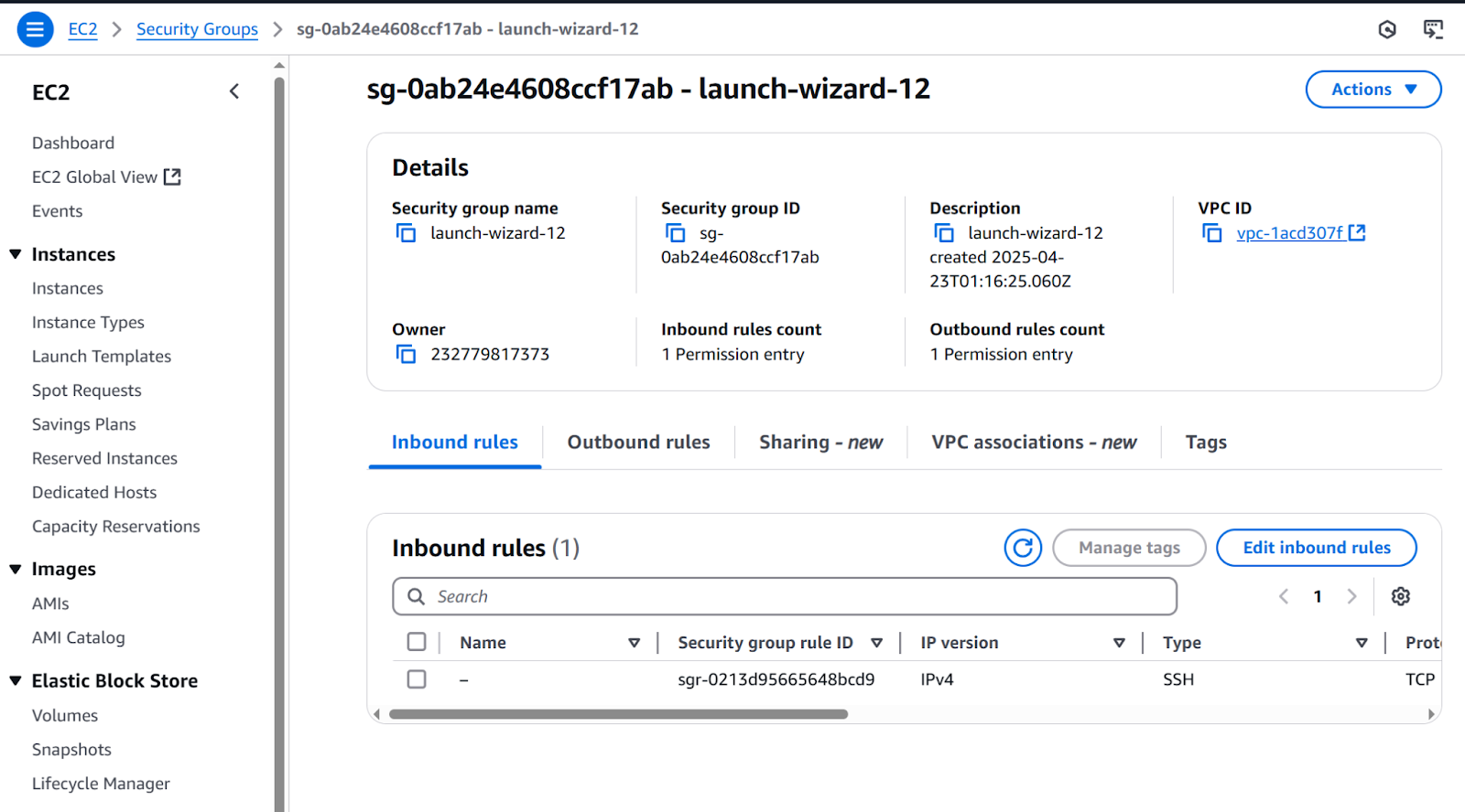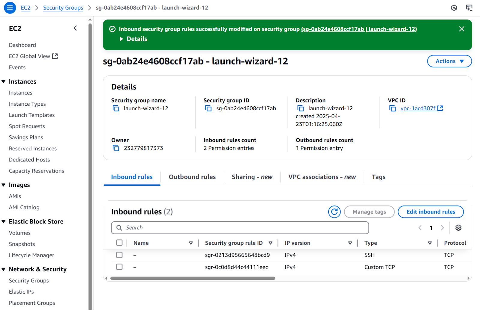 The inbound rule is now created: