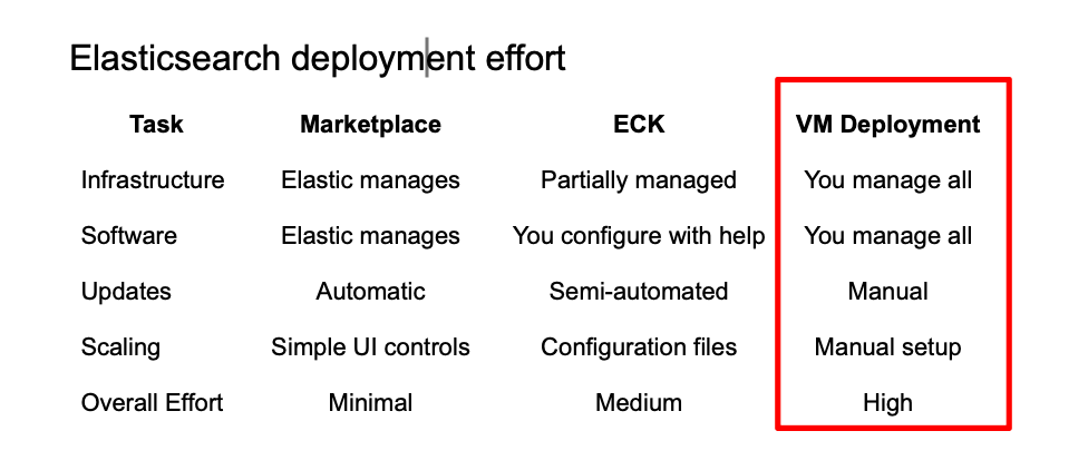- Simplicity: Easier to start than ECK on EKS, which provides scaling tools but has a steeper learning curve.