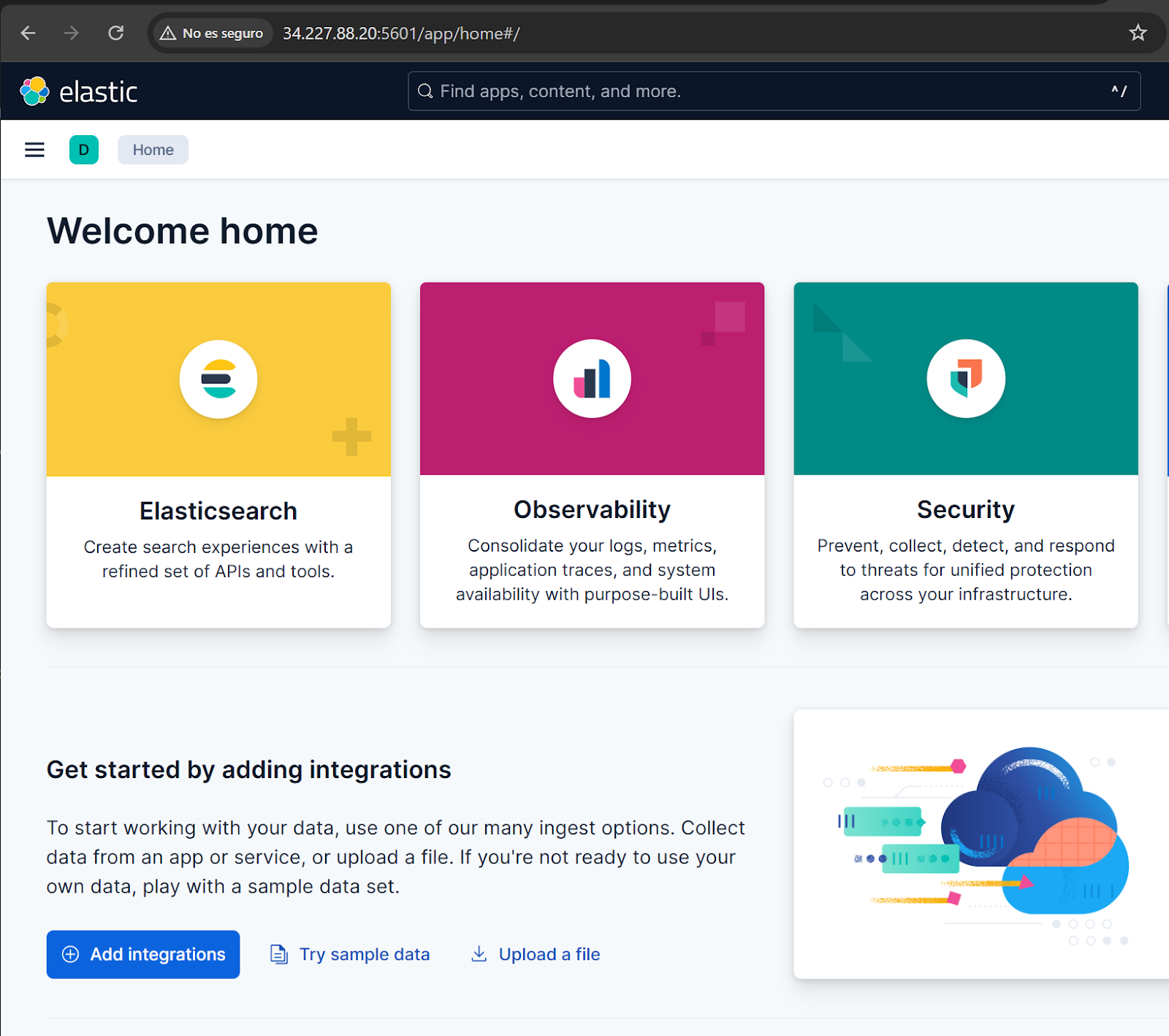 http://{VM-IP-ADDR}:5601/?code=567892Now, access the Virtual machine Public IP Address and add the code shown above.