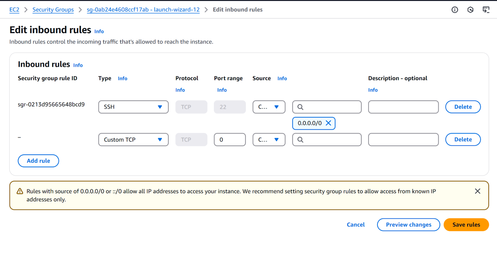 ii. CIDR: 0.0.0.0/0.
