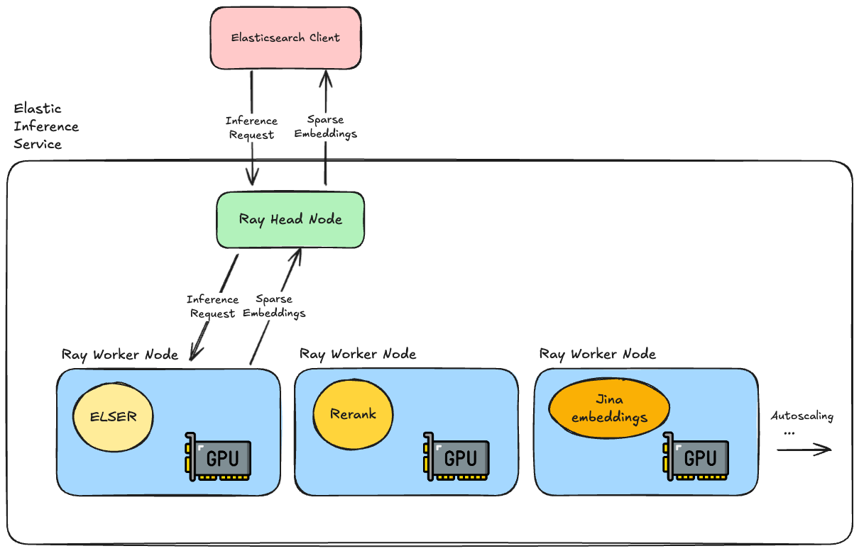 The team used Ray to build out the service, specifically using the Ray Serve libraries to run our machine learning models. This runs on top of Kubernetes and uses pools of NVIDIA GPUs in the Elastic Cloud Platform to perform the model inference operations.