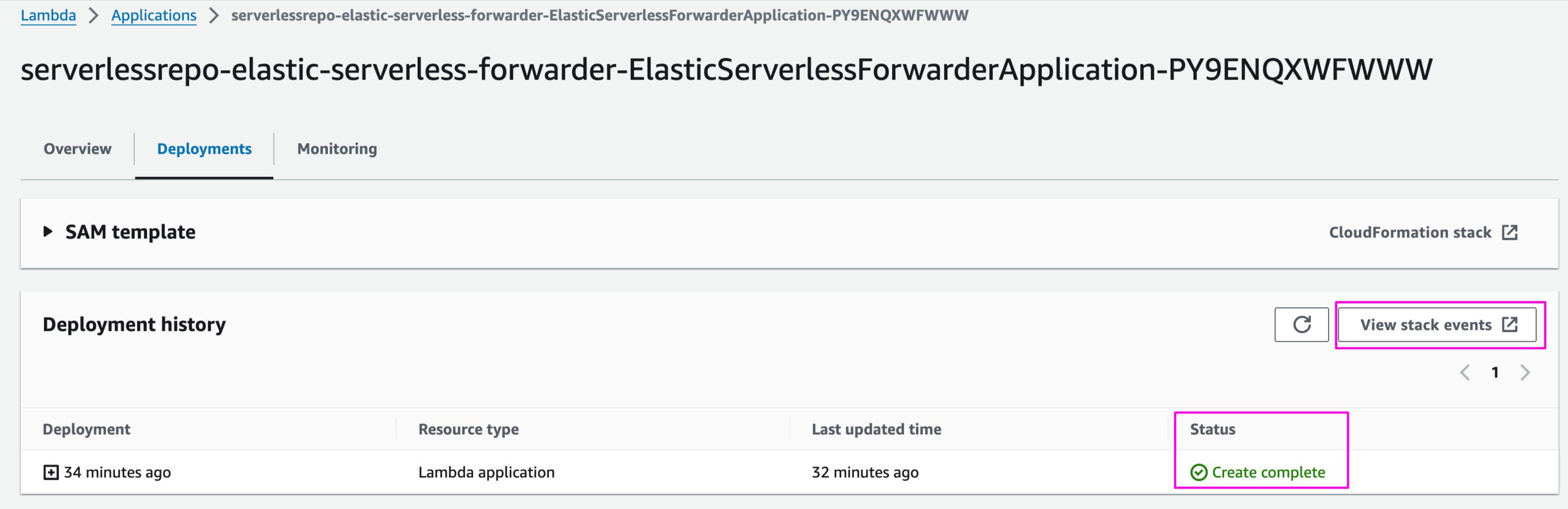 There are several options available to deploy Elastic Serverless Forwarder from SAR (Serverless Application Repository):