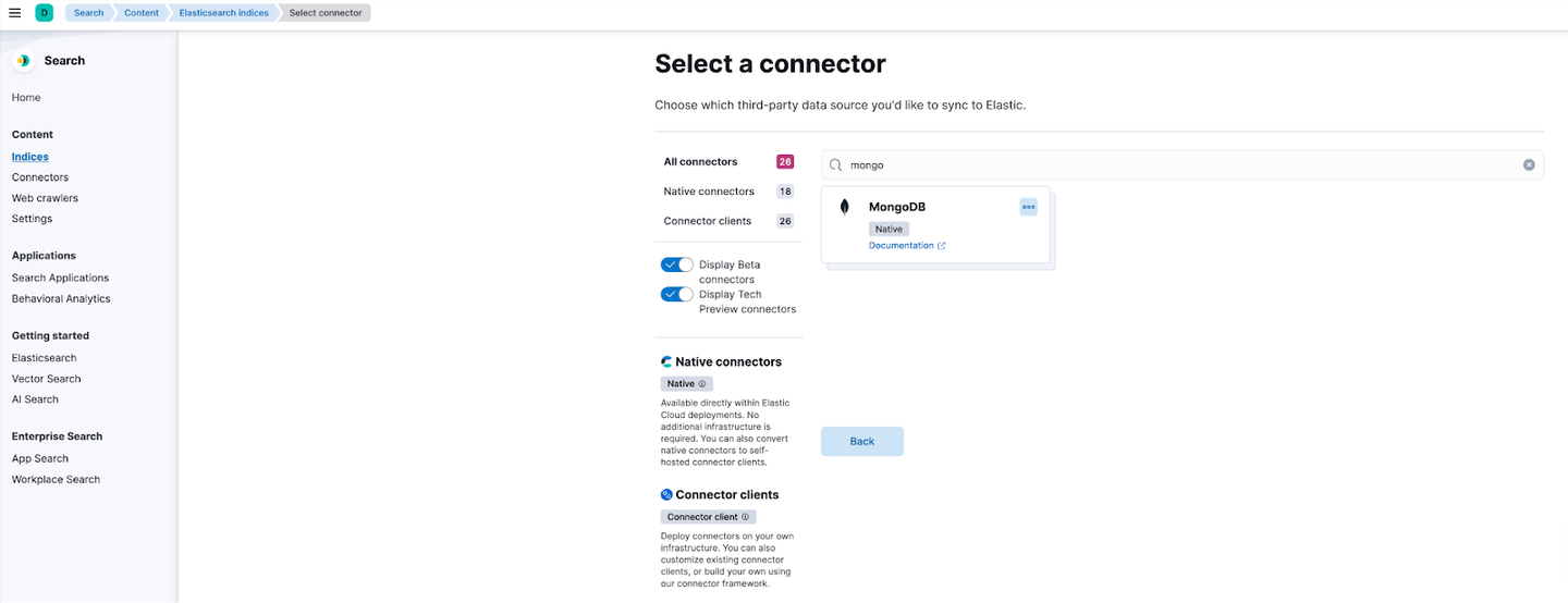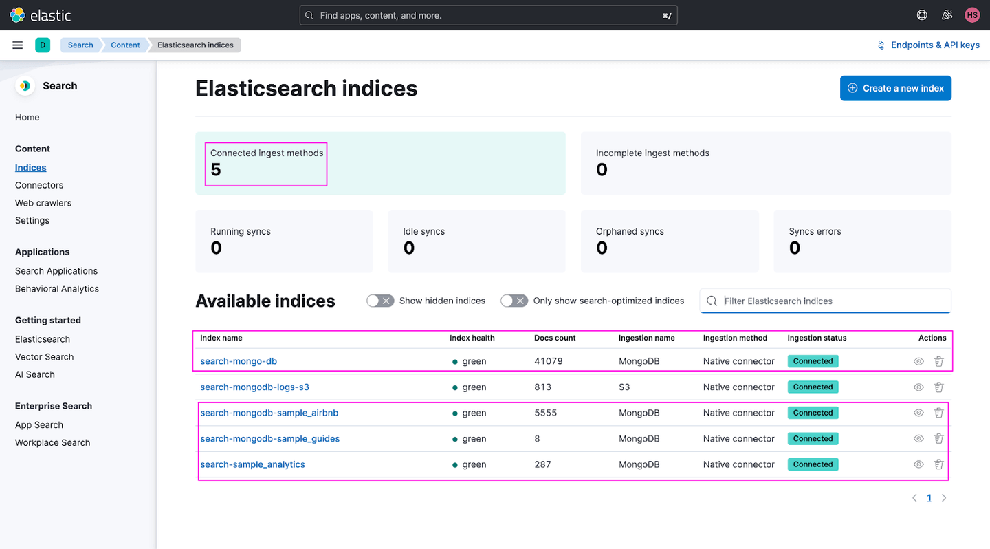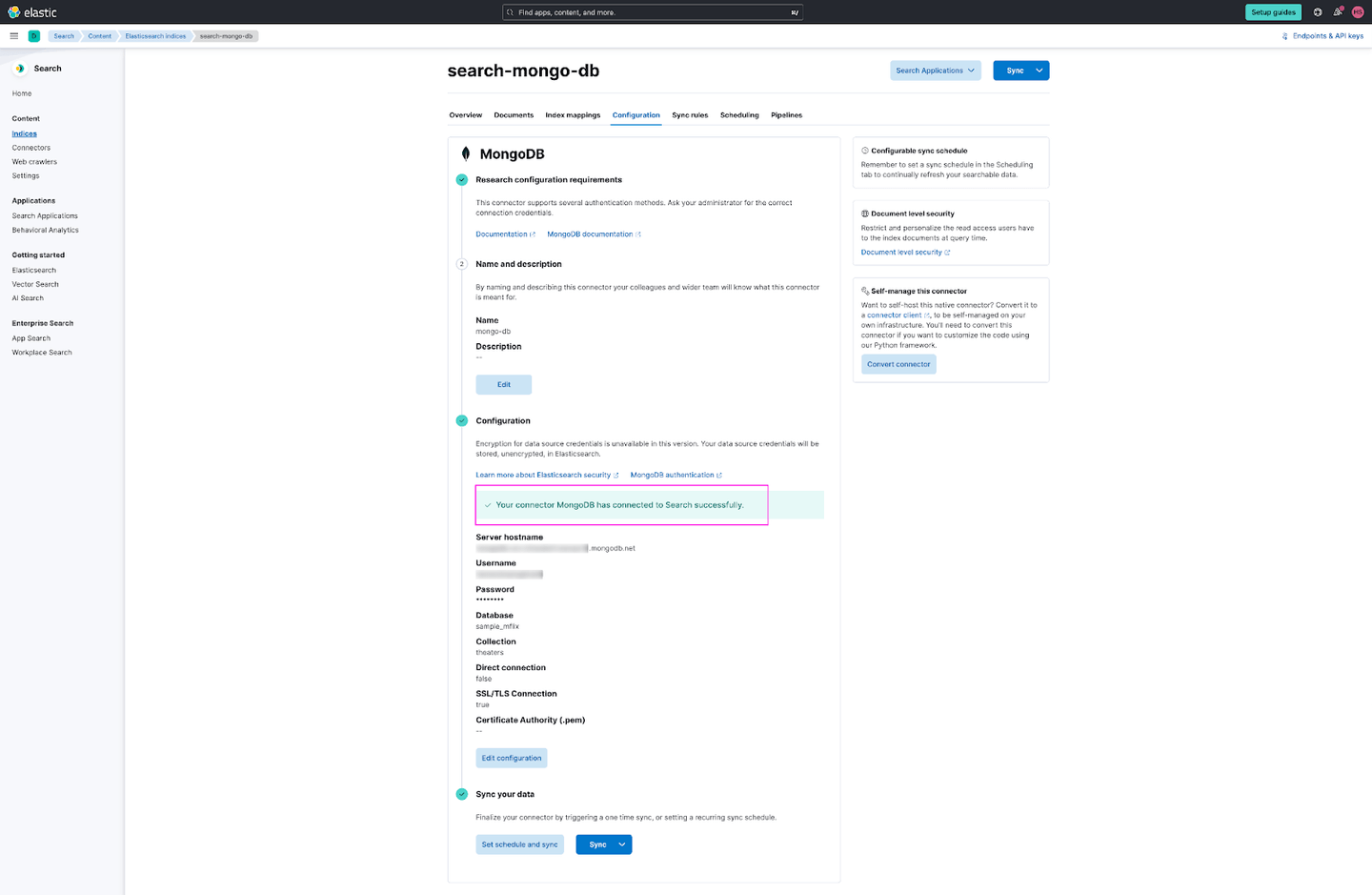 Below is a step-by-step guide on how to ingest and sync data from the MongoDB database into Elasticsearch using the Elastic MongoDB connector.