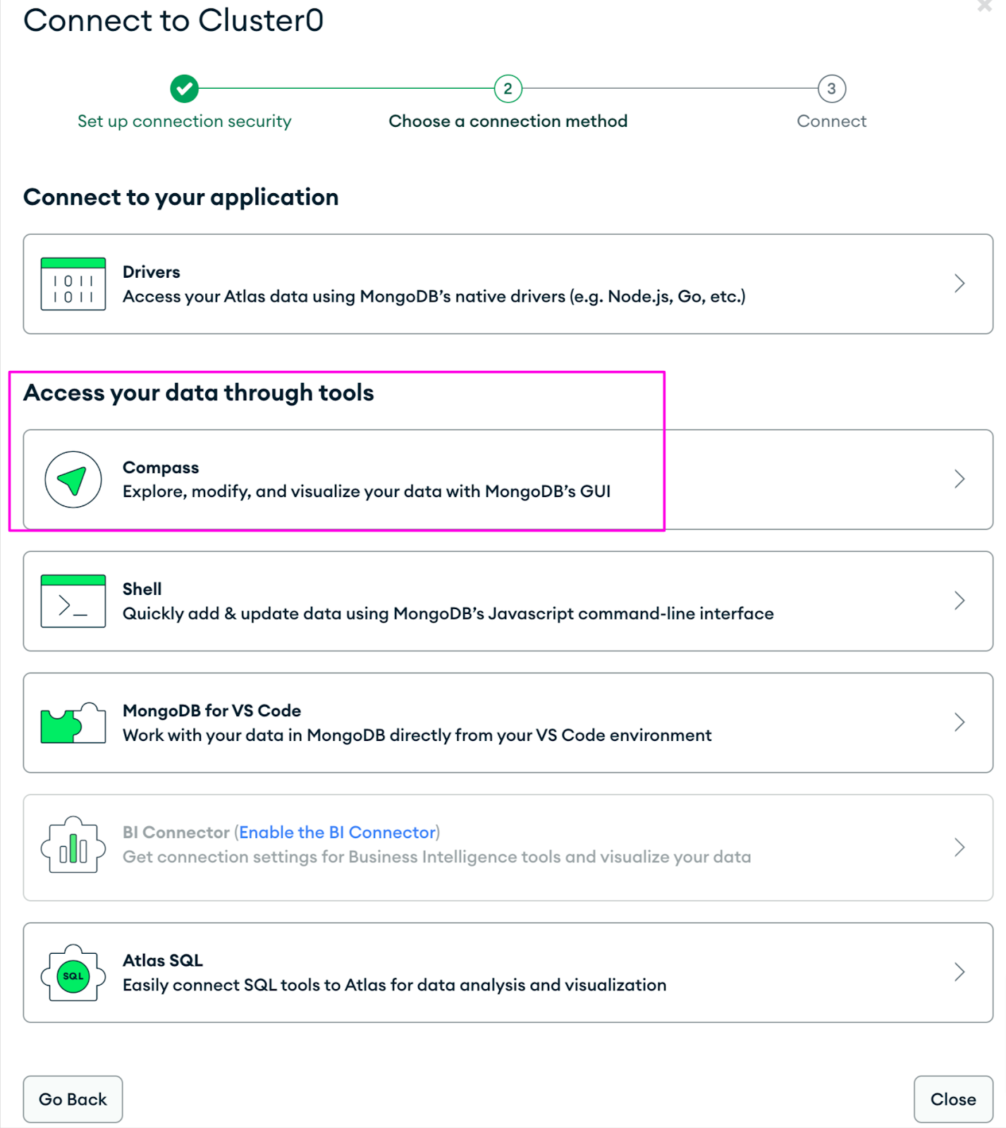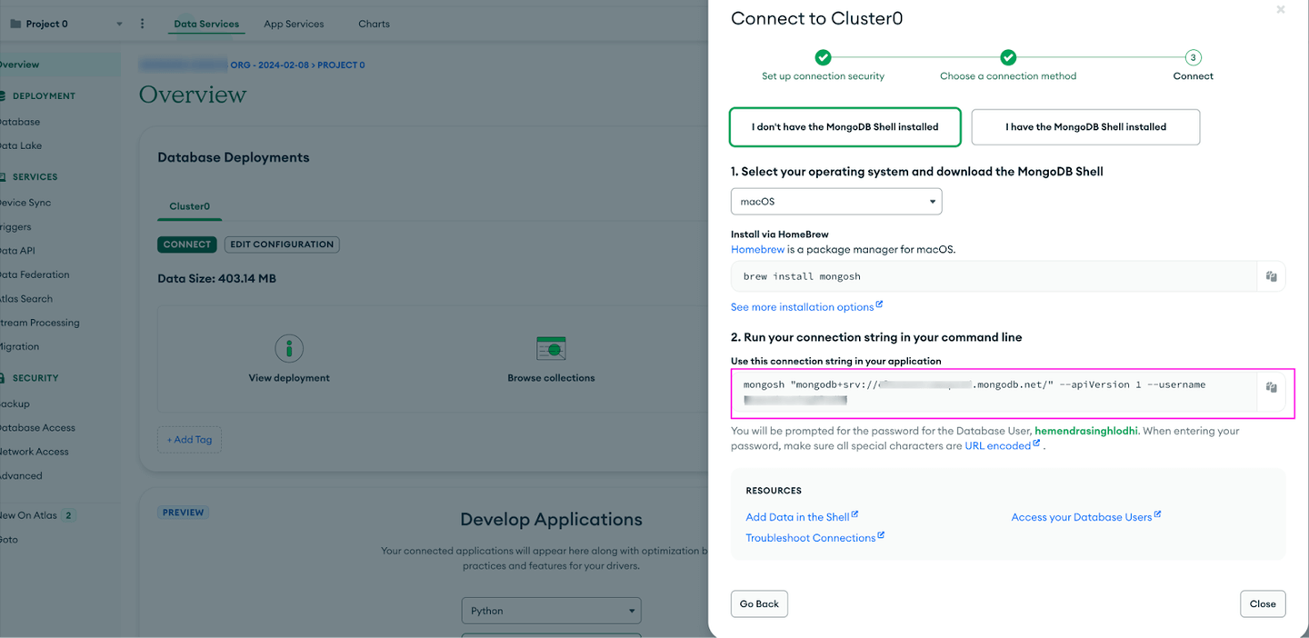 Copy the connection string. The host name will look like this: _mongodb+srv://cluster0.xxxxxxx.mongodb.net