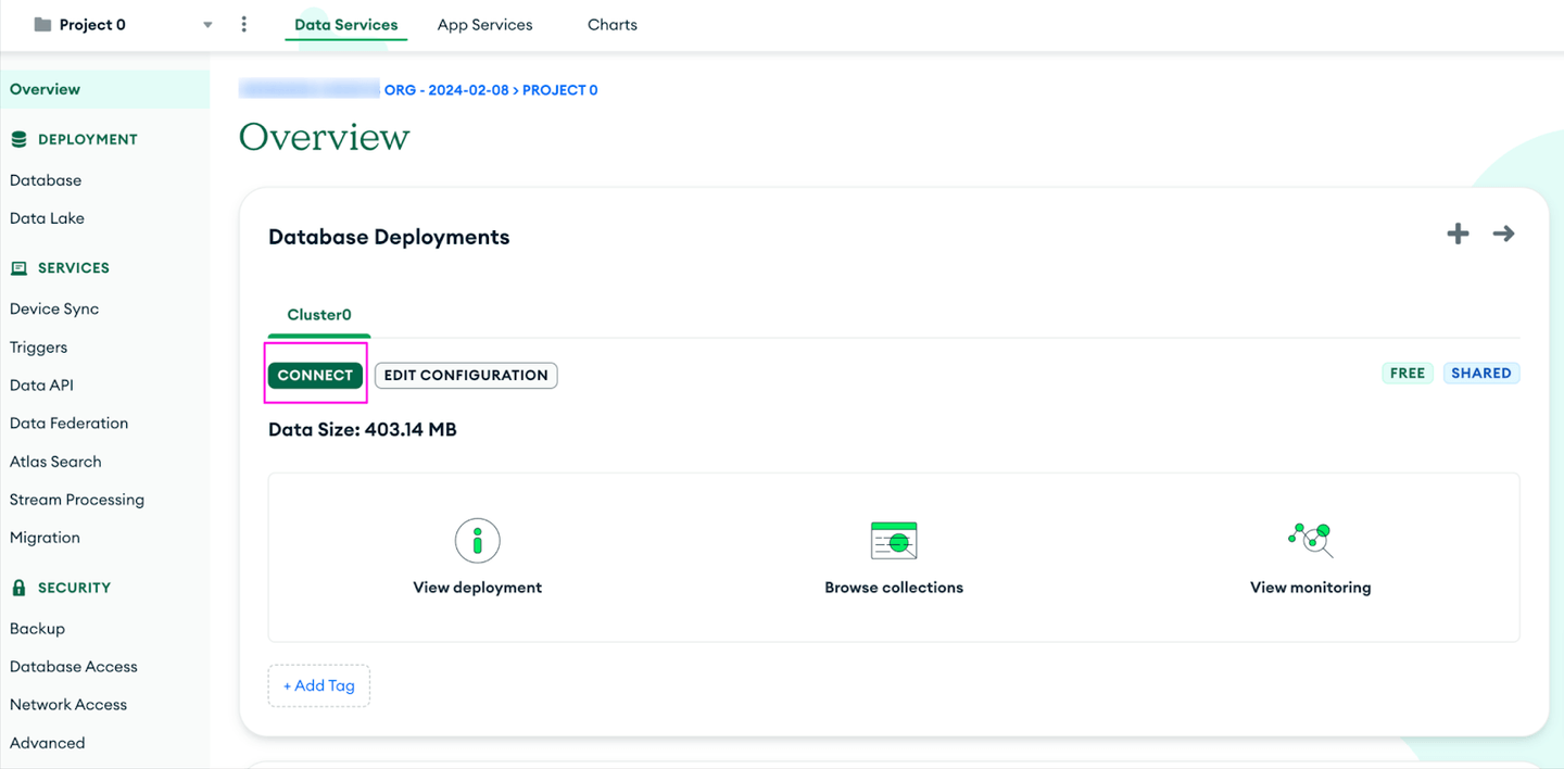 - If you don't have an existing setup then Create an account and deploy Atlas cluster. We will be using a free tier for data sync.