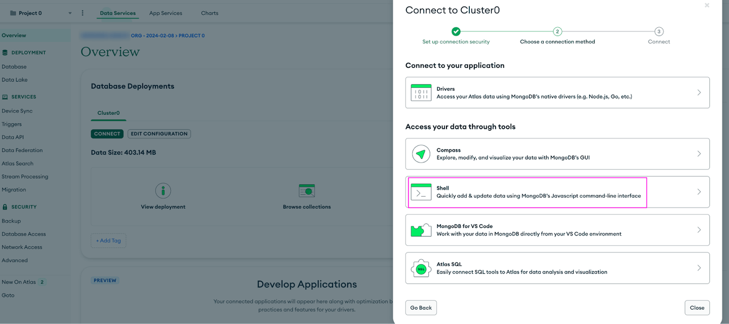- Get MongoDB Atlas host information, which is required to configure the connector.