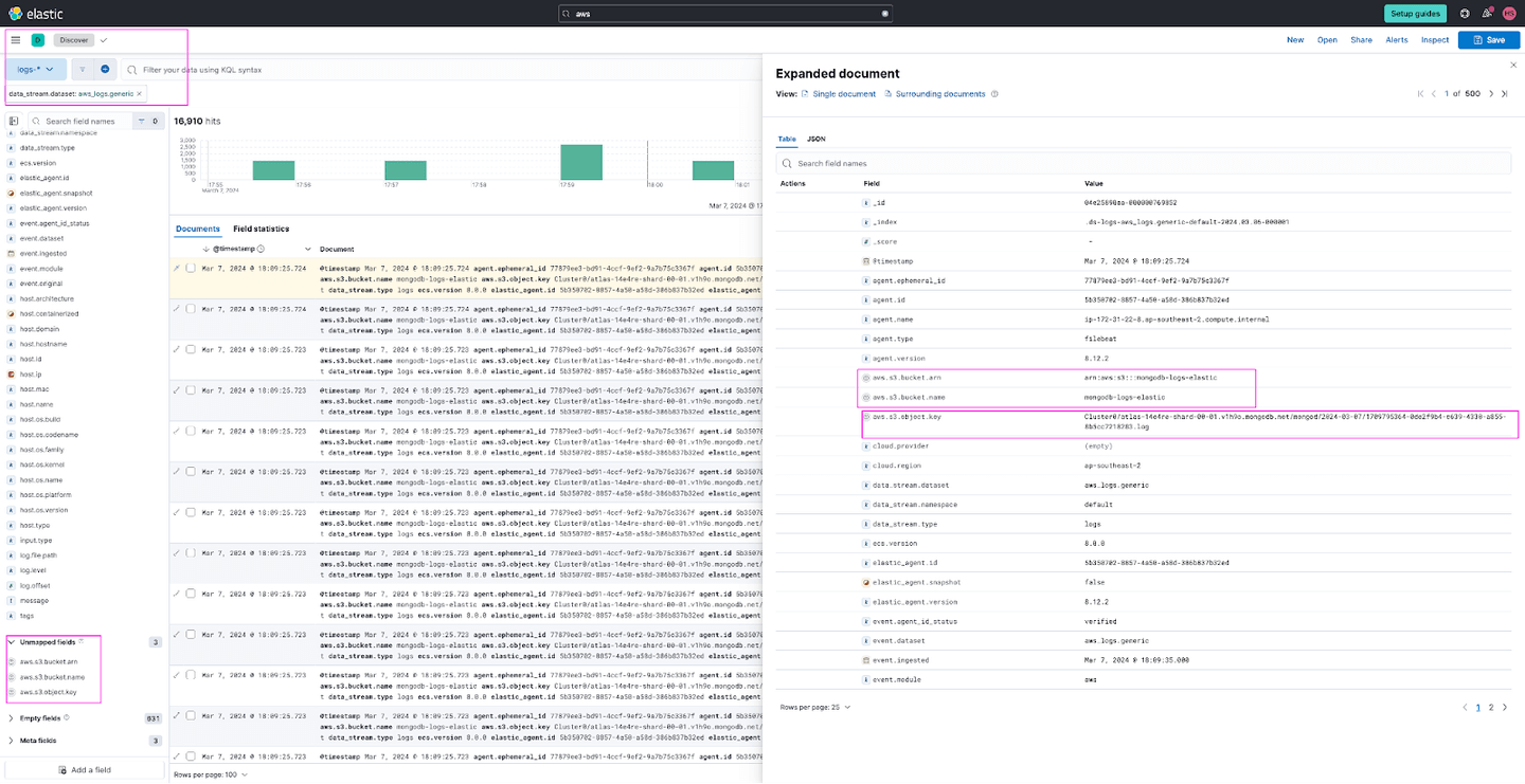 Check fields : aws.s3.bucket.arn OR aws.s3.bucket.name OR log.file.path to confirm logs are coming from configured s3 bucket only.
