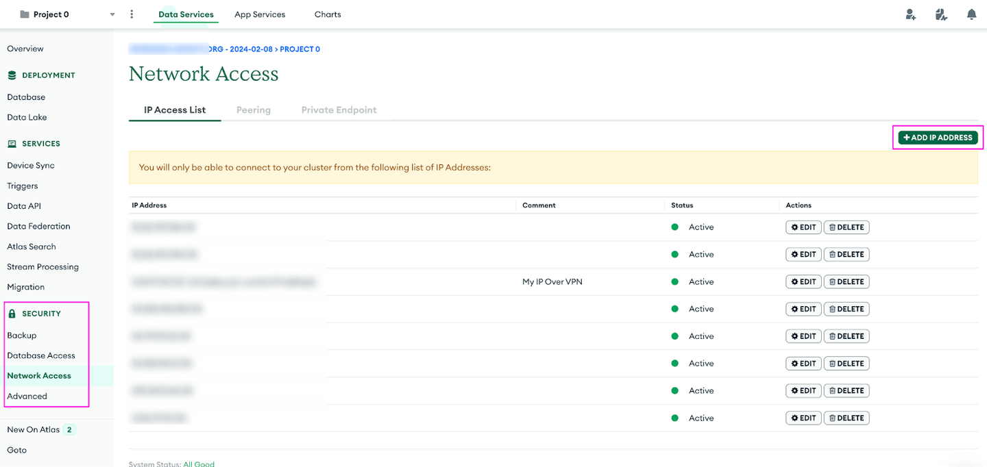 You can configure IP ranges under MongoDB Atlas -> Security -> Network Access
