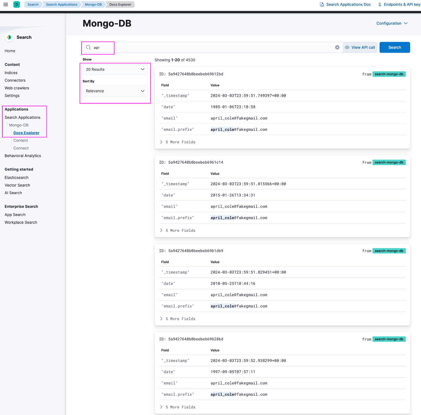 Note: Files bigger than 10MB will not be ingested and file permissions set at MongoDB level are not synced as is into the Elastic Deployment.