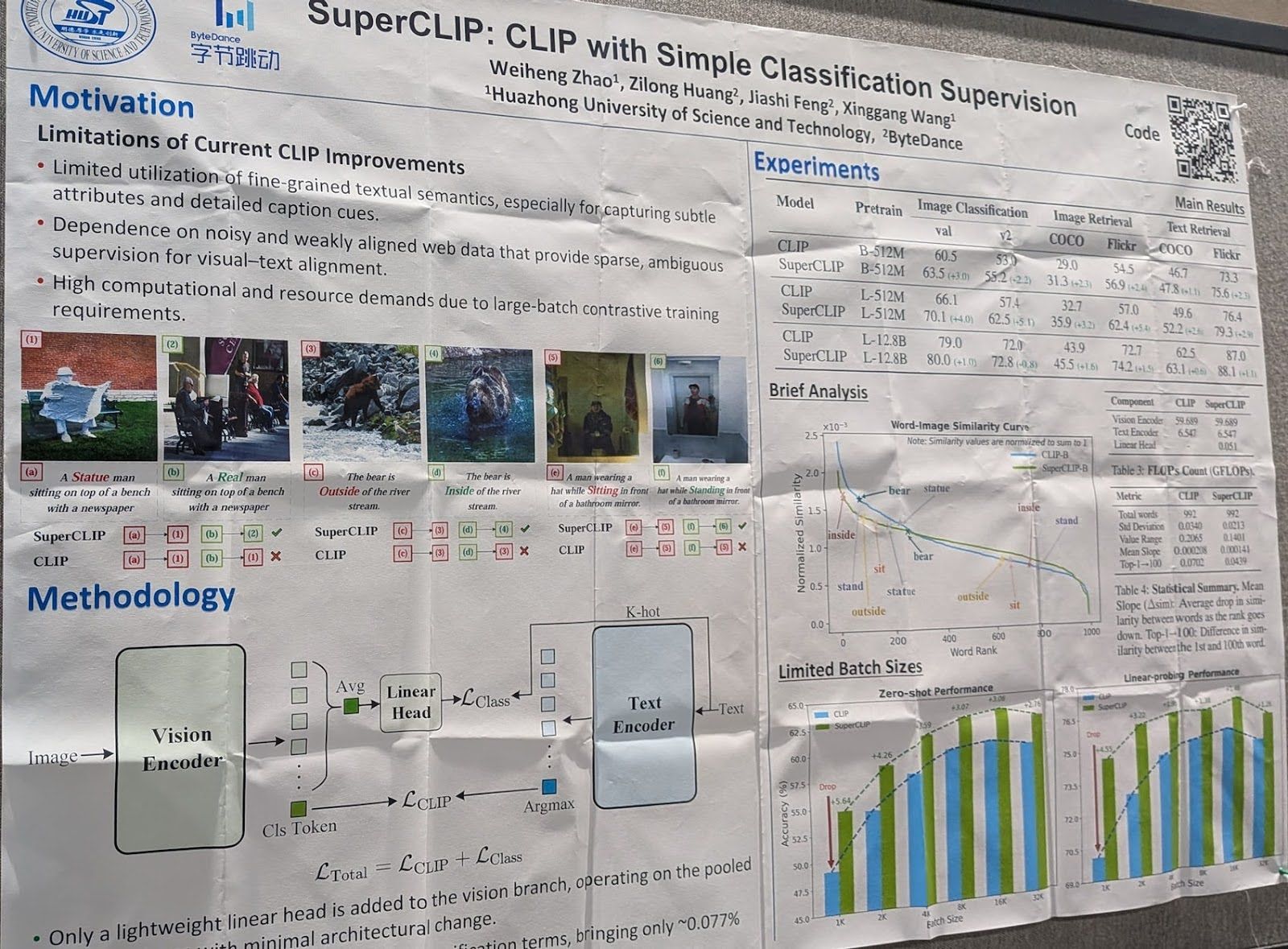 Poster presentation at NeurIPS 2025: "SuperCLIP: CLIP with Simple Classification Supervision."