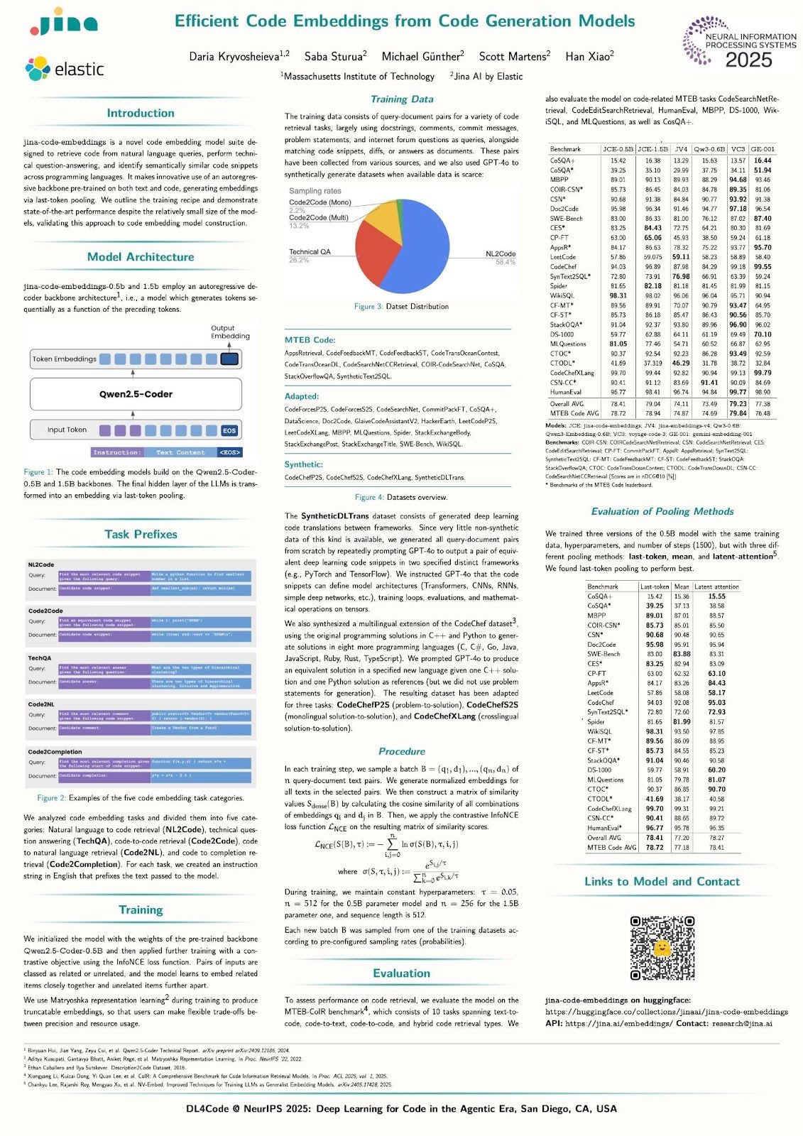 Jina’s poster presentation at the DL4C workshop. Read the paper on arXiv: Efficient Code Embeddings from Code Generation Models.